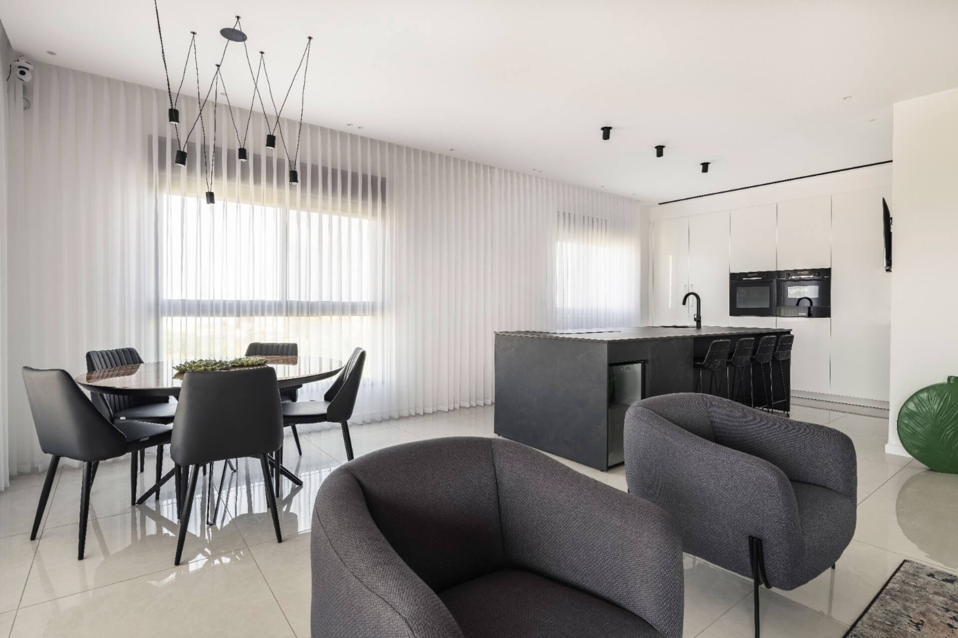 תוכנן פונקציונאלי ועוצב בחומרים וגוונים נכונים, המטבח תוכנן ועוצב כחלל אחד פתוח אל אזור האירוח, שמאפשר שטח אירוח גדול ונוח, בשילוב רהיטים ואקססוריז שנותנים ענין, תחושה בתית ואוירה נעימה… והינה לפניכם התוצאה.